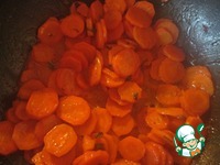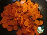 Выложить порезанную кружочками морковь, перемешать, чтобы равномерно распределились пряности. |
