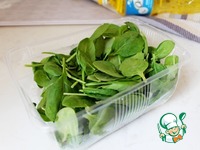 Выложить в сотейник беби шпинат (или просто шпинат) и обжарить его 1-2 мин. |