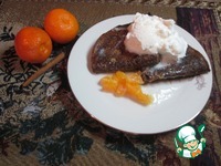 Описание: Необычные и очень вкусные блинчики, в которых гармонично сочетается вкус шоколада с ароматами кардамона и корицы. Завершают общую вкусовую картину нежная сливочная карамель и сладкие дольки мандарина.