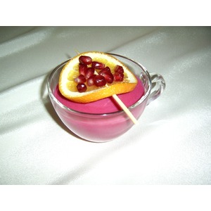 5. Попробовать на вкус, при необходимости, если Ваш апельсин не сладкий, добавить мёд. Налить в чашку или бокал, украсить кружком апельсина, надетым на шпажку, сверху насыпать зёрна граната. |