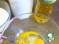 Добавила молоко, потом всыпала муку, и соду гашенную. Все тщательно перемешала. И добавила масло "Олейна". |