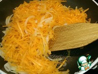 А в это время обжариваем до мягкости лук и добавляем к нему натертую морковь. Жарим еще пару минут, солим и даем остыть. |