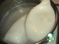 Кальмара белый лепесток В бурлящий синий кипяток, Подержим на мгновение, Снова до кипения. |