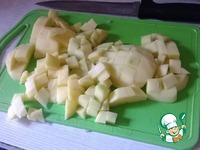 Добавляем в бульон, нарезанную кубиками, картошку и варим 15 мин. |