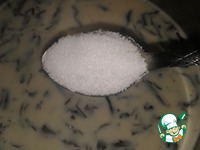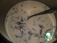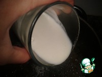 Как закипает, вливаем молоко и не переставая помешиваем. |
