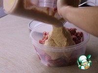 Добавить полученную смесь в фарш и всё тщательно смешать. |