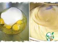 Яйца взбить вместе с сахаром до увеличения в объёме в несколько раз, посветления и растворения сахара. Около пяти минут. |
