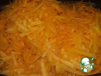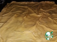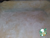 Раскатать второе фило, сверху начинку посыпать 4 ст. л. сухарей, уложить филло произвольно, делая складочки. Бортики завернуть внутрь. Сверху смазать маслом. |