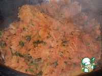 Мелко нарезаем и отправляем к тыкве ароматные травки. Готовим начинку до пюреобразного состояния. |