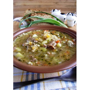 Описание: Весна пока только манит обещаниями, а после прогулки по ветерку тарелка обжигающе горячего наваристого супа незаменима! Попробуйте сварить вот такой суп – как альтернативу нашему рассольнику и грибному супу с перловкой. Думаю, не разочаруетесь!