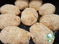 Формируем небольшие котлетки. Обваливаем их в панировочных сухарях и выкладываем на сковороду. |