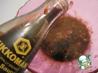 Мясо кладем на фольгу, сверху проливаем маринадом. |