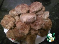 Отправляем фарш на час в холодильник. Потом снова его мешаем и формируем маленькие котлетки. Обваливаем их в панировочных сухарях и жарим с обеих сторон. |