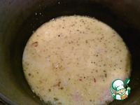 Добавляем литр воды (кипяток). Солим, добавляем специи и оставляем чтоб закипело. |