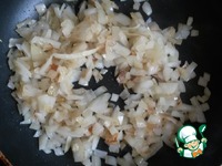 Лук нарезаем не большими кубиками и обжариваем на разогретой сковороде с маслом до золотистого цвета |