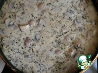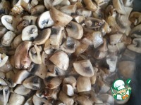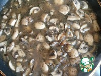 Шампиньоны нарезаем произвольно (я лично люблю крупные кусочки), добавляем к луку, солим и тушим на медленном огне, пока не выпарится вся влага и грибы немного не обжарятся |