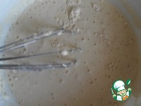 Оставшийся 200 мл воды вылить в миску, добавляем муку, сметану и солим, взбиваем венчиком |