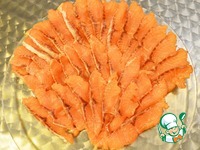 Вариант 1. От тонких частей хвоста острым ножом нарезаем тонкие пластинки наискось. |