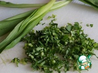 Для соуса нарежем пол пучка (количество произвольное и зависит от вашего вкуса, мне нравится побольше) черемши. |