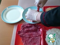 Панируем шницель (поочередность: мука, льезон, сухари.) |