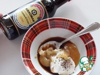 Для заправки смешайте сметану, соевый соус "Киккоман", мед, горчицу и черный перец. |