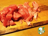 Свинину нарезать тонкими брусочками. |