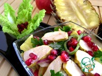 Овощи очисти и промыть, обсушить. Разобрать гранат на зерна, ананас очистить и нарезать кубиками. Можно взять ананас консервированный, но у меня сегодня ананасный денек! |