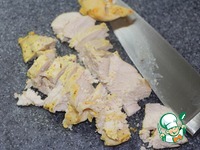 Отложить половину постной основы и добавить к ней куриную грудку. |