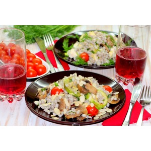 Ужин: Теплый салат с перловкой, овощами, грибами и куриной грудкой "Тандури мунг" готов. Просим к столу! |