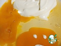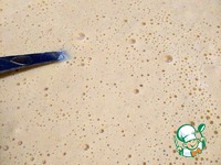 Соединить муку с жидкой массой. Перемешать до однородности. |