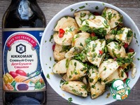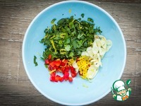 Опустить сыр в смесь с соевым соусом. Добавить нарезанные пряности, перемешать и оставить моцареллу на 15-30 минут, чтобы она впитала все вкусы и ароматы. |
