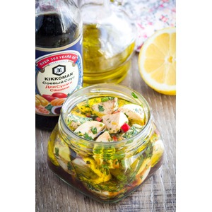 Описание: Это невероятно вкусная, яркая и солнечная закуска! Очень ароматная за счет свежей зелени и цедры лимона, острая благодаря чесноку и перцу чили. А основной вкус создается за счет качественного оливкового масла, соевого соуса и уксуса. Когда вы съедите всю моцареллу (а она исчезнет быстро), останется потрясающий соус-заправка. Им можно заправлять овощные и листовые салаты. Такой сыр можно подать гостям в качестве закуски или взять с собой на пикник. Вприкуску к мясу с огня и лавашу - просто сказка!