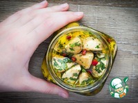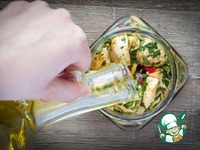 Переложить все содержимое миски в банку и залить качественным оливковым маслом. |