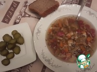 Грибы тоже мелко порезать и обжарить с луком и морковкой. Примерно через 25 минут после начала варки к перловке добавить картофель. Еще минуты через 3-4 добавляем поджаренные грибы. Варим еще минут 7-8. Добавляем специи и приправы. У меня это 3 лавровых листочка, 5 горошинок черного перца, сушеный чеснок (можно несколько свежих зубчиков положить), сушеные укроп и петрушка, смесь кореньев для супа (пастернак, корень сельдерея, лук-порей). Поварить еще минут 5-6. Соль я всегда добавляю в конце или уже в тарелке - так меньше требуется соли для достижения желаемого вкуса. |