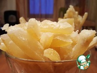 Описание: Готовила цукаты из помело во второй раз. Очень уж они нам понравились. Один облом - сушка в духовке. В прошлый раз ушло около 4 часов. Я соединила процесс варки и сушки в один шаг, воспользовавшись сковородой вок. Цукаты получаются сладкие, с цитрусовой ноткой!!! Снаружи засахаренная корочка, а внутри сладкий сироп!!!