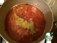 И заключительный шаг: высыпаем содержимое сковороды в кастрюлю, добавляем томатную пасту, лавр и заливаем куриным бульоном) Тушим по вкусу, не меньше часа) |