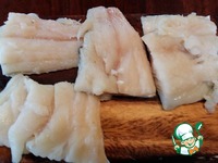 У меня сегодня филе атлантической трески. 4 кусочка рыбы посолить, поперчить, приправить Вашими любимыми специями для рыбы и хорошо присыпать панировочными сухарями. |