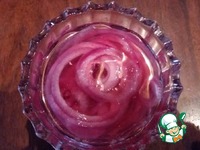 Красный лук нарезать тонкими колечками и при желании замариновать. |