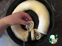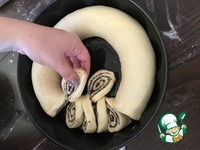 Защипать край, чтобы не открывался и выложить в смазанную маслом круглую форму, концы обрезать до ровного ( чуть чуть подравнять, но можно и не делать этого) |