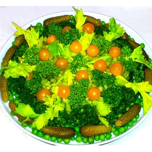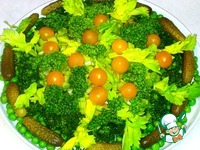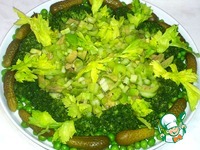 Описание: Зелёный салат из овощей и зелени с острым соусом.