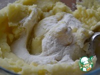 Картофель отварить. Сделать пюре, добавив подсолнечное масло и соль. Добавить муку и хорошо перемешать. |