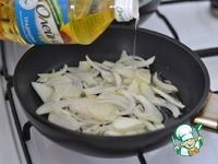 Лук репчатый нарезать соломкой и обжарить в 2 ложках подсолнечного масла "Олейна". Оставить остывать. |