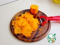Тыкву очистить от кожуры и семечек. Тонко нарезать пластинками (я это делала с помощью терки). |