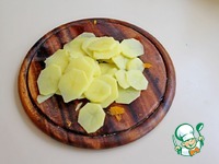 Также тонко нарезать картофель. |