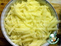 Картофель помыть, почистить и натереть на крупной тёрке, выложить в миску. |