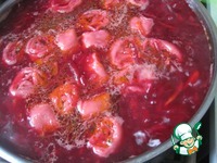 Сразу же после клецок выливаем свеклу. |