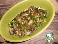 Готовые грибы переложите на блюдо. Каждый слой щедро посыпайте солью, молотым черным перцем, чесноком и зеленью, поливайте винным соусом. Поставьте в холодильник на 40-45 минут. |