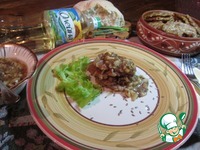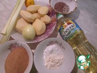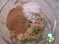 Натереть на крупной терке картофель и лук. Смешать с растительным маслом, крахмалом, мукой, сухарями, тимьяном. Посолить, поперчить. |