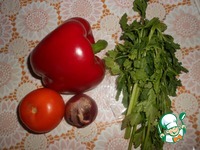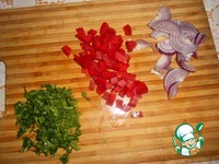 Сладкий перец нарезать кубиками, луковицу-полукольцами. Зелень мелко нарезать. |