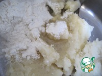 В оставшийся картофель добавляем муку, 1 ст. л. растительного масла. |